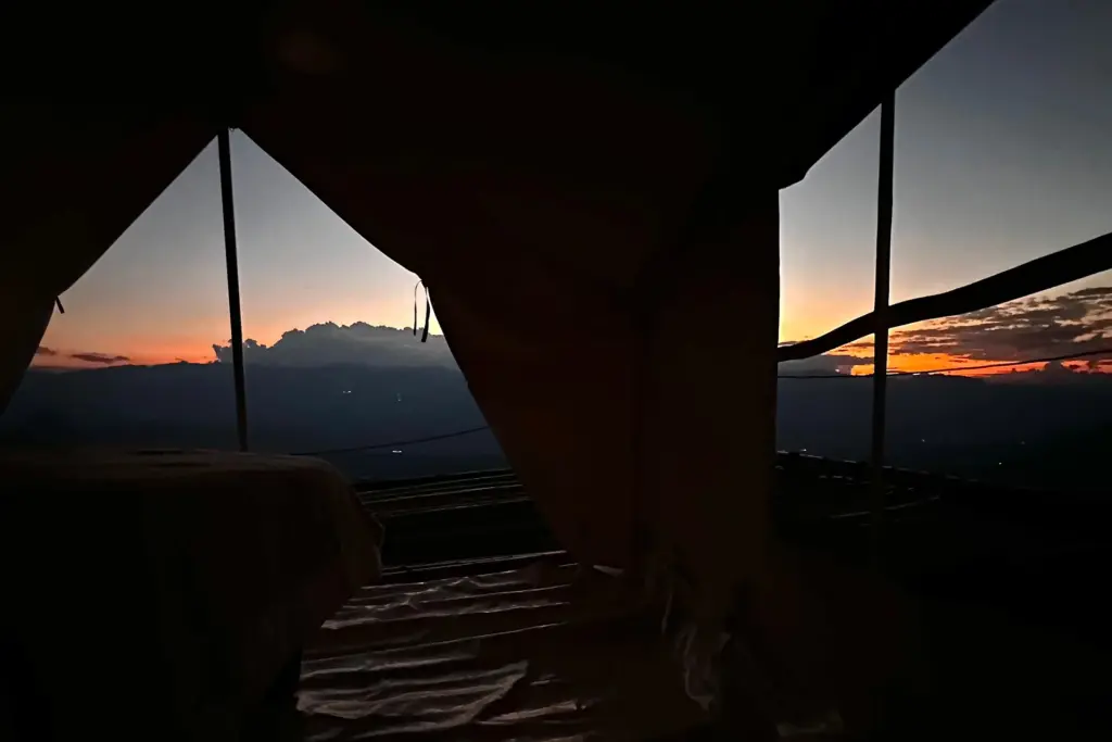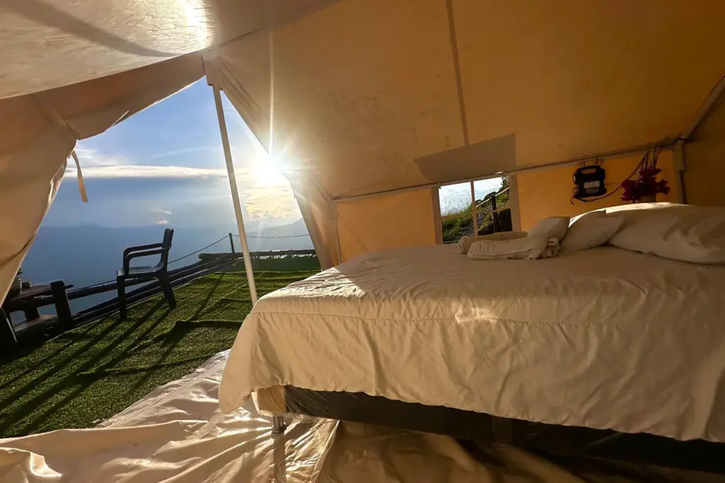 Viva una experiencia extraordinaria de glamping en la cima de una impresionante montaña, donde el lujo y la naturaleza se unen en amplias y elegantes carpas con camas Queen y vistas espectaculares.